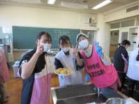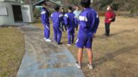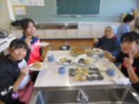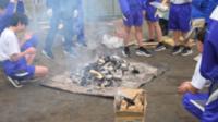 学校では、学校運営協議会の桑畑さん、楠本先生、佐本先生、用務員の下野さんが焼き芋を焼いて待っていてくれました。下準備は、AチームBチームの生徒達も手伝ってくれました。