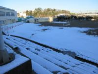 週末の降雪で学校もすっかり雪景色になりました。正門を入ってから昇降口までのスロープは雪がなかったのですが・・・